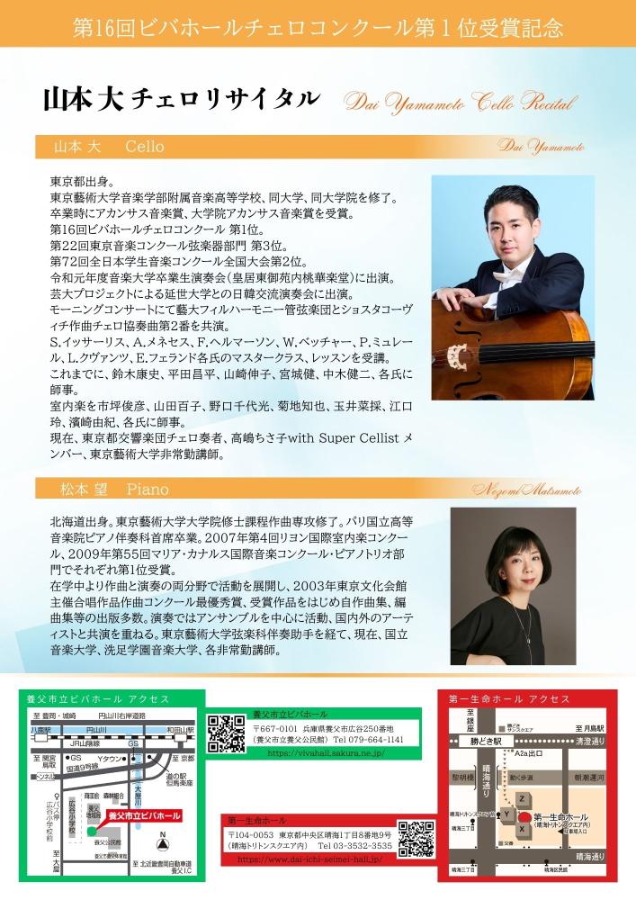 第16回ビバホールチェロコンクール第1位受賞記念 山本大チェロリサイタル