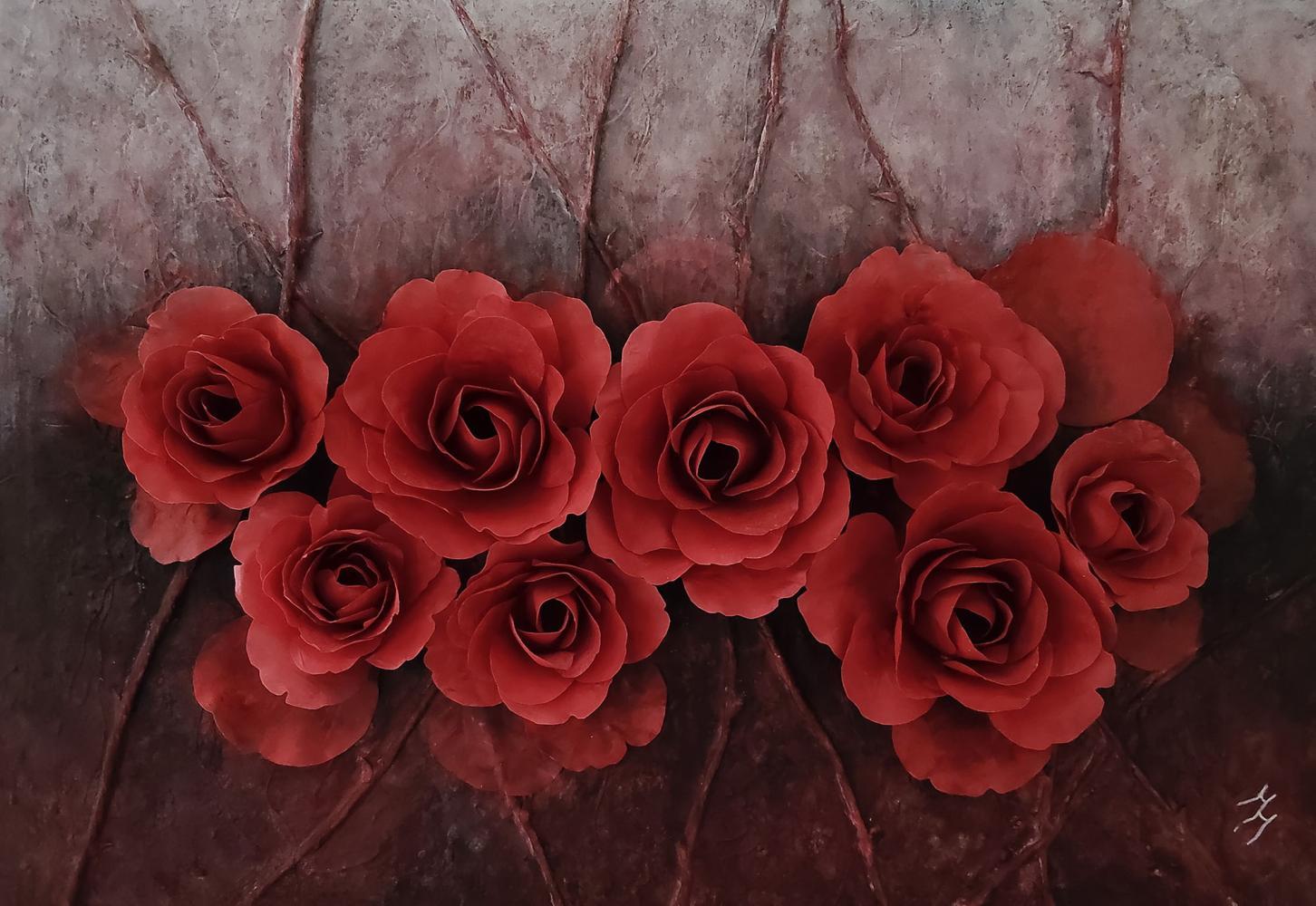 For this exhibition, three artists have created works inspired by the theme of "8 Roses."
