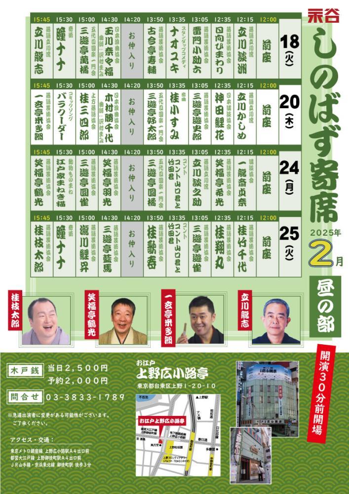 【立川流 広小路亭昼席】毎月17日 開演時間:12時00分