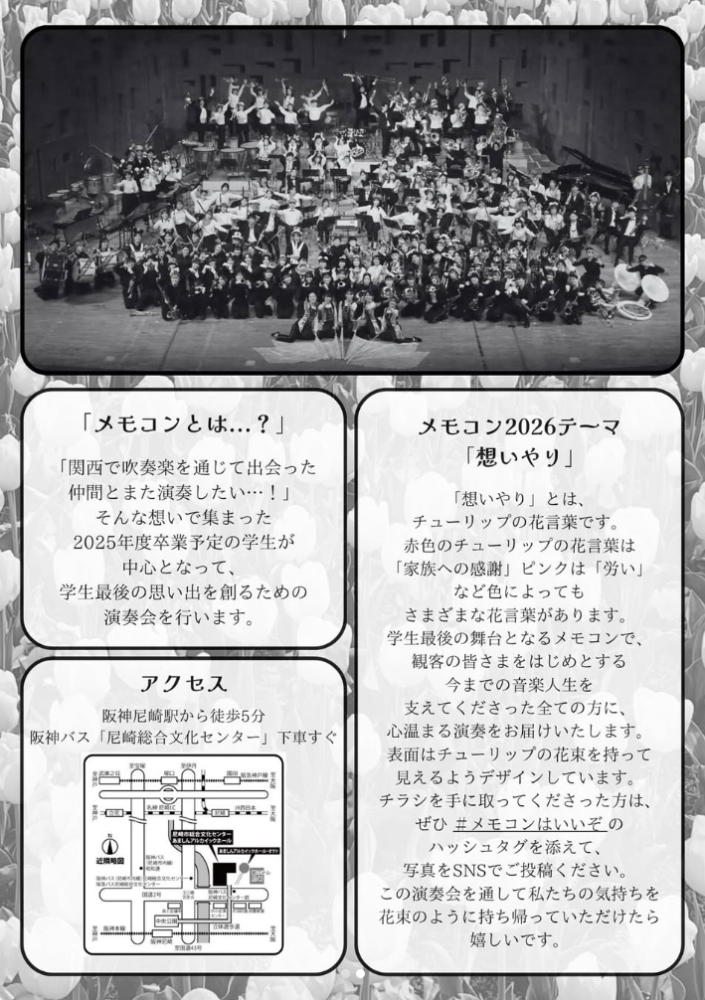 「関西で吹奏楽を通じてであった仲間とまた演奏したい...!」そんな思いで集まった2025年度卒業予定の学生が中心となって、学生最後の思い出を創るための演奏会を行います。