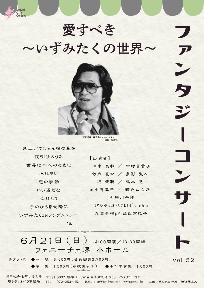 ファンタジーコンサートvol.52 愛すべき~いずみたくの世界~