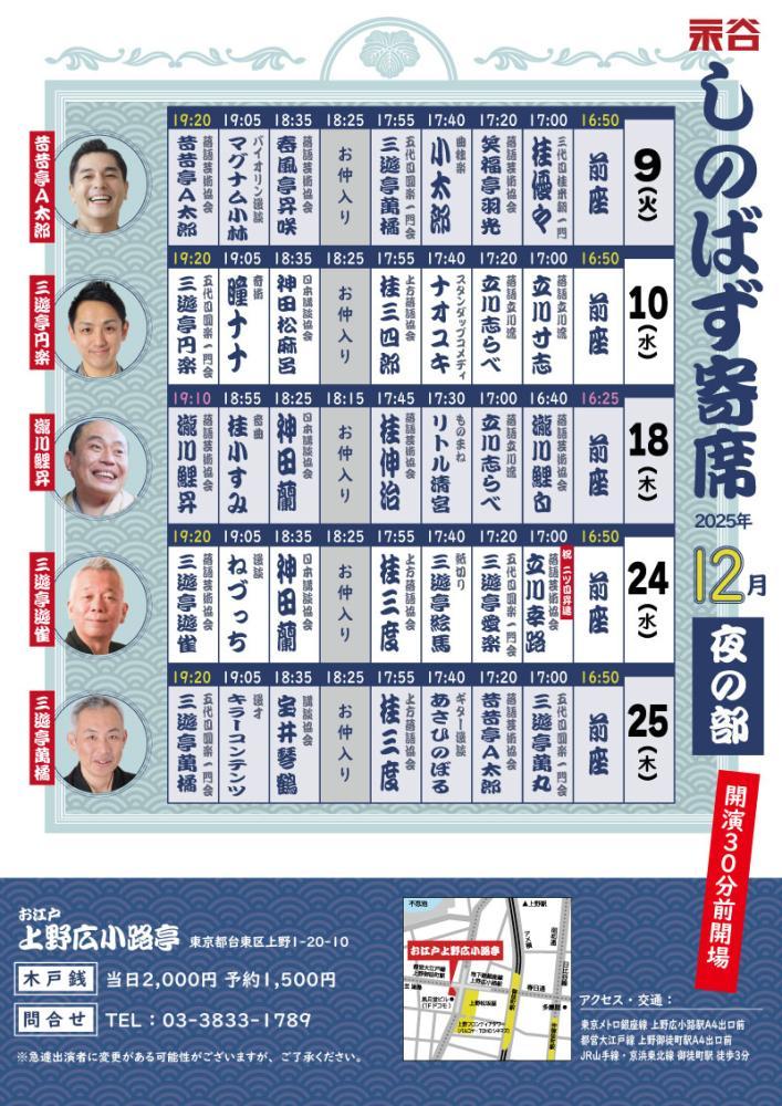 【立川流 広小路亭昼席】毎月17日 開演時間:12時00分