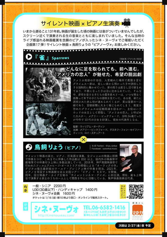 生演奏付き上映会 ピアノーヴォ vol.17『雀』