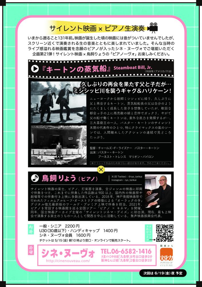 生演奏付き上映会 ピアノーヴォ vol.21『キートンの蒸気船』