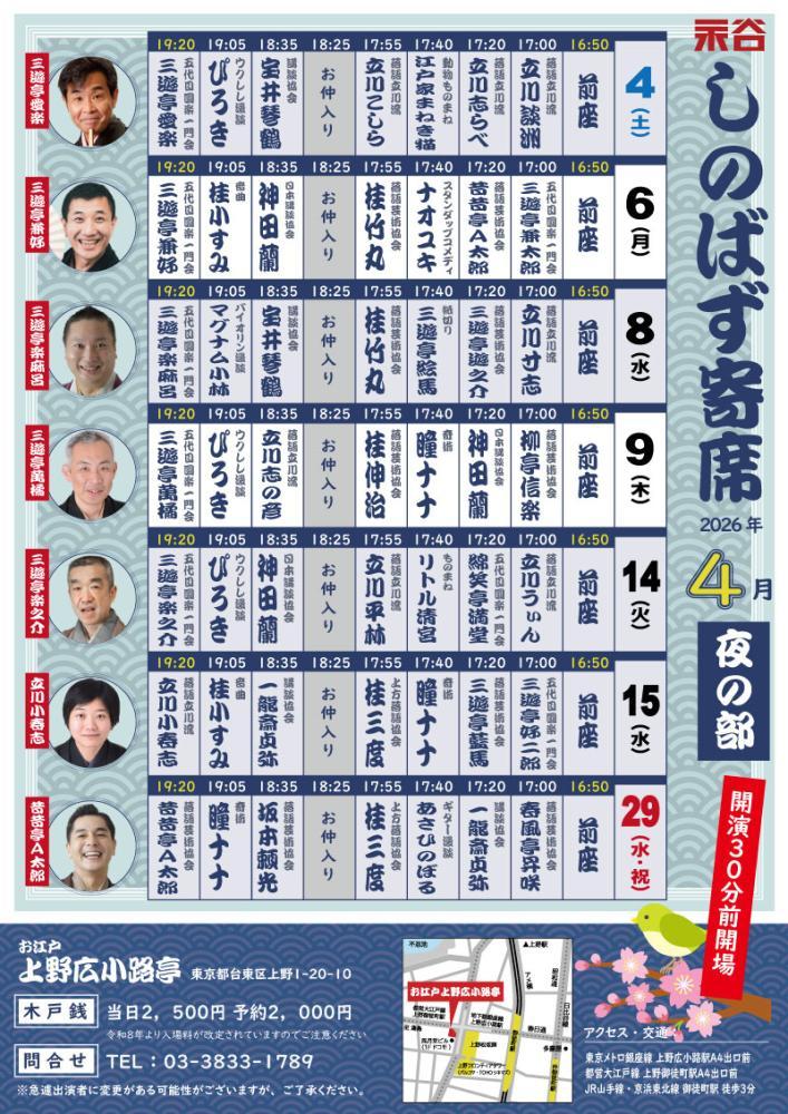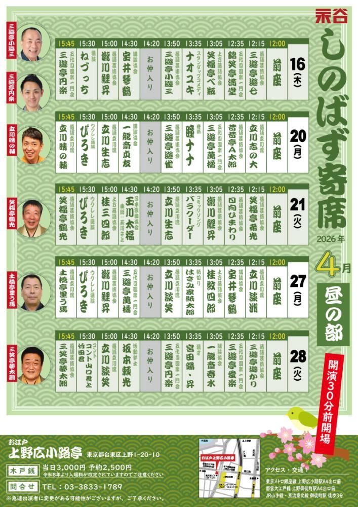 永谷演芸場ならではの寄席を上野で。